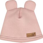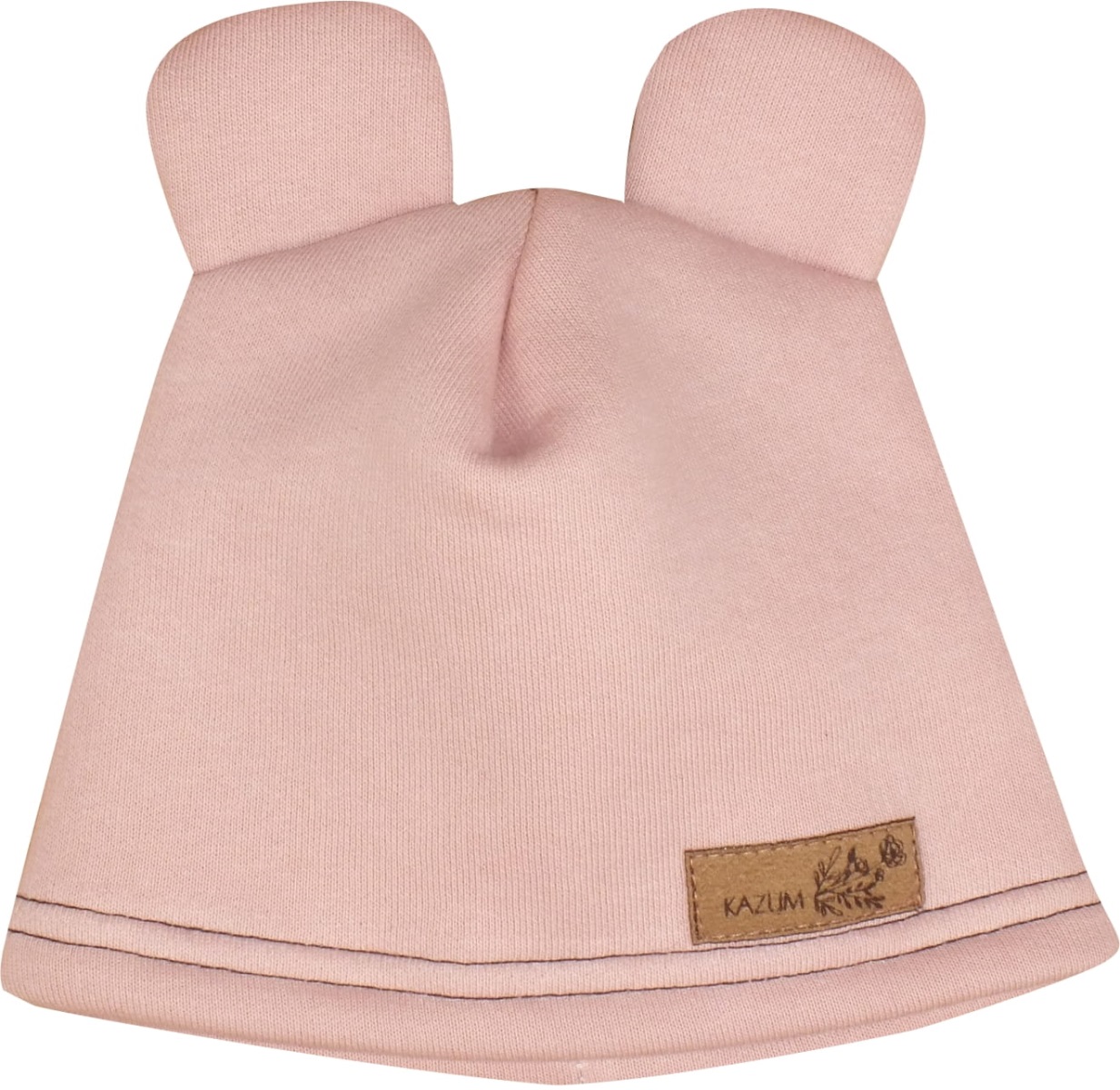 Teplá detská čiapka Kazum, bavlnená s uškami, pudrová, veľ. 68/74