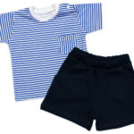 Tričko s vreckom, kr. rukáv + kraťasky, 2D, Baby Nellys, bavlna, prúžok/granát, veľ. 80