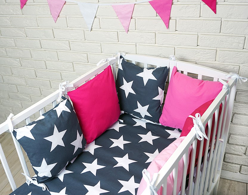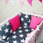 Vankúšikový mantinel s obliečkami – hviezdy, čierná/malinová, 120×90 cm