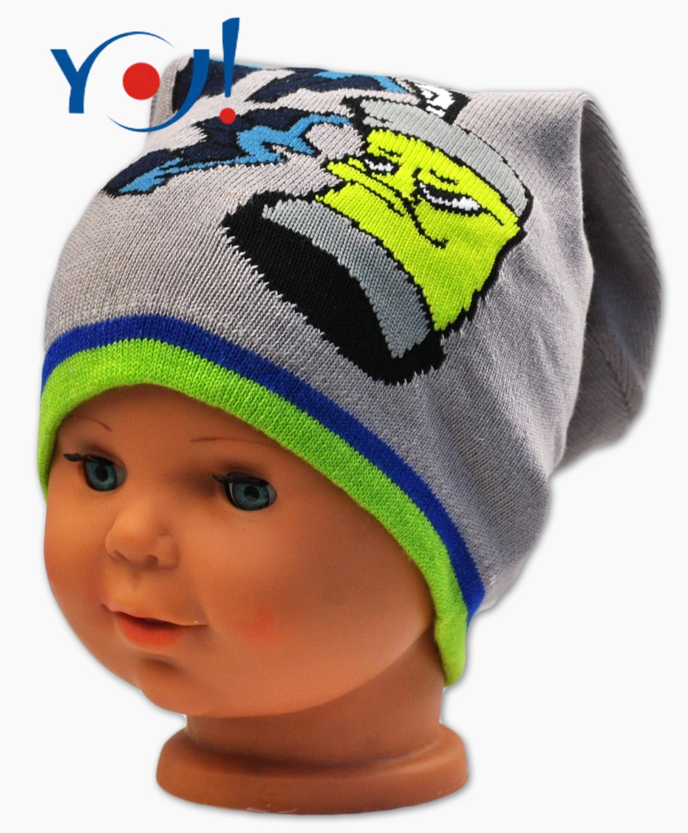 YO!: Jesenná čiapka Graffiti (tm. sivá/zelený lem)