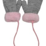 YO! Zimné detské rukavice s kožušinou – šnúrkou YO – sivá/ružová kožušina, vel. 110