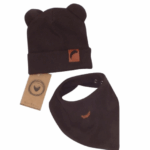 Z & Z Dvojvrstvová rebrovaná čiapočka s uškami + šatka, čokoládová