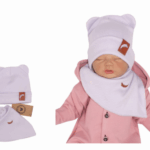 Z & Z Dvojvrstvová rebrovaná čiapočka s uškami + šatka, lila, 92/98
