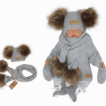 Z & Z Zimná čiapka s brmbolcami z kožušinky s šálou 2V1, sivá, vel. 86
