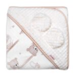Zavinovacia deka s kapucňou a uškami, Malý medvedík, bavlna/luna, smotanová