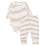 Zavinovacie rebrované body + tepláčky, 2D sada Prúžok, béžové