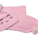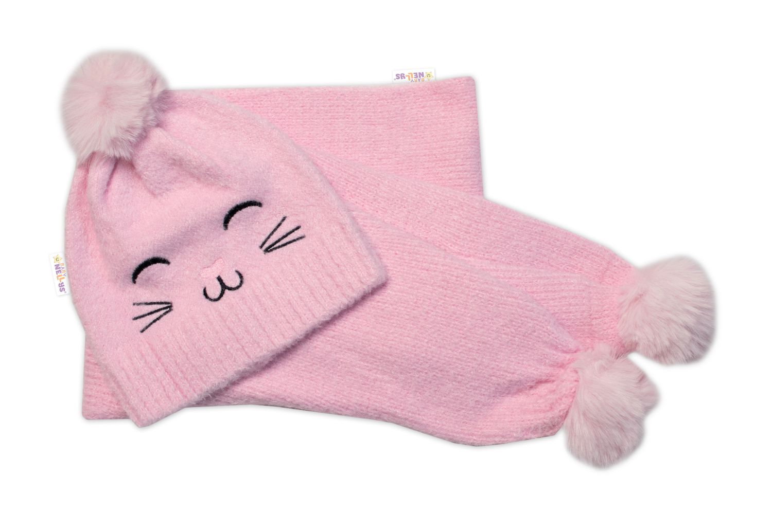 Zimná čiapka s brmbolcom + šál, Kitty, Baby Nellys – ružová, veľ. 54/58
