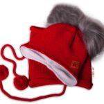 Zimná čiapka s fleecom a chlupáčka. bambuľky Star + komínok – červená