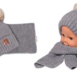 Zimná čiapka s kožušinovými brmbolcami + šál Baby Nellys Star – sivá, 6/24 mesiacov
