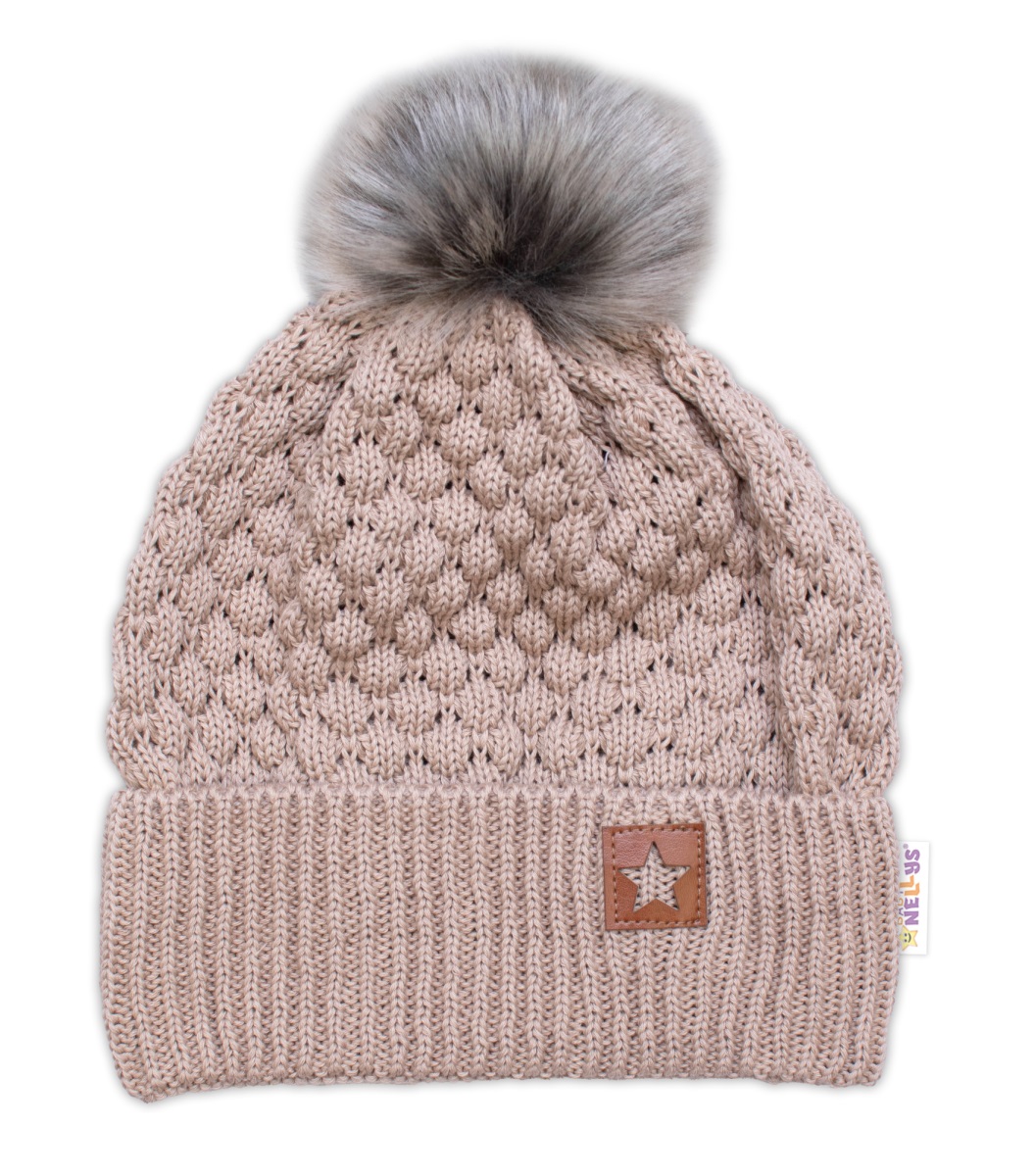 Zimná čiapka Star s chlpáčkovým brmbolcom – béžová