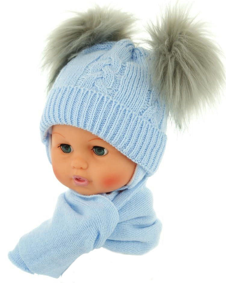 Zimná čiapočka so šálom: Bambuľky (sv. modrá)