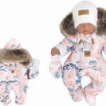 Zimná kombinéza s dvojitým zipsom, kapucňou + rukavičky, Z&Z Angel, ružičky,veľ.68