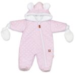 Zimná prešívaná kombinéza s chlpáčkovou podšívkou + rukavičky, Love, ružová, veľ. 74