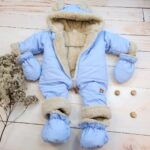 Zimná prešívaná kombinéza s kožúškom a kapucňou + rukavičky + topánočky, Z&Z – modrá, 68