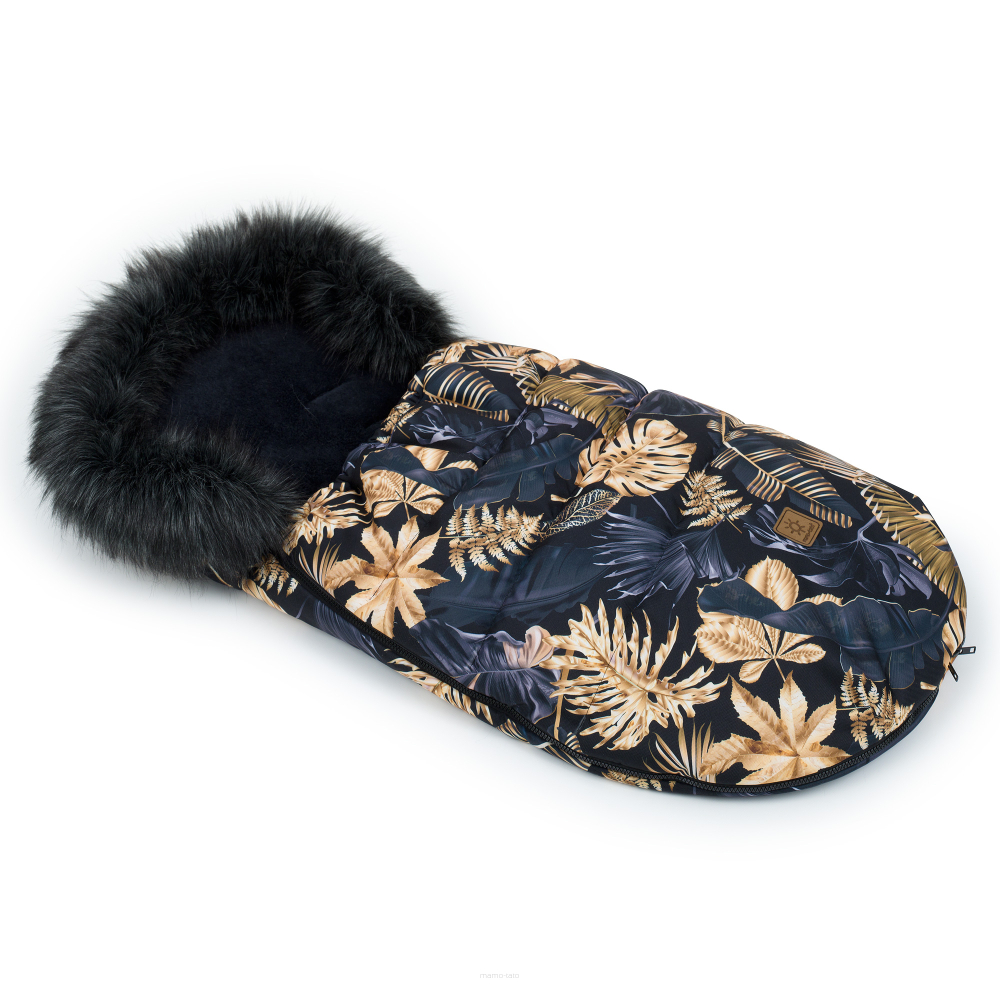 Zimný fusak Lux s kožušinkou, Listy 50 x 100cm – čierny / zlatý