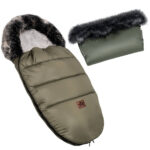 Zimný fusak s kožušinou + rukávnik zadarmo, Baby Nellys, 50 x 100cm, olivový