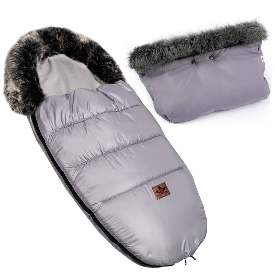 Zimný fusak s kožušinou + rukávnik zadarmo, Baby Nellys, 50 x 100cm, sivý