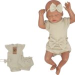 Z&Z 3-dielna sada body, kraťasky, čelenka s mašľou – olivová, veľ. 74