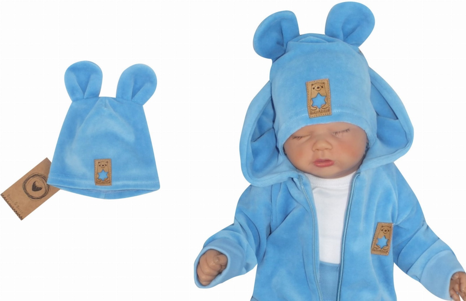 Z&Z Velúrová, semišková čiapočka s uškami, sv. modrá, 68/74