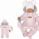 Z&Z Zimná prešívaná kombinéza s kožušinou a kapucňou + rukavičky – sv.ružová, veľ. 62
