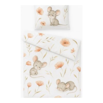 Obliečky do postieľky s výplňou + vrecúško, bavlna, Myška, 135x100cm/40x60cm