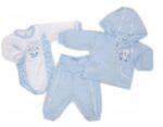 Sada obsahuje: mikinka s kapucňou, tepláčky, bodýčko.